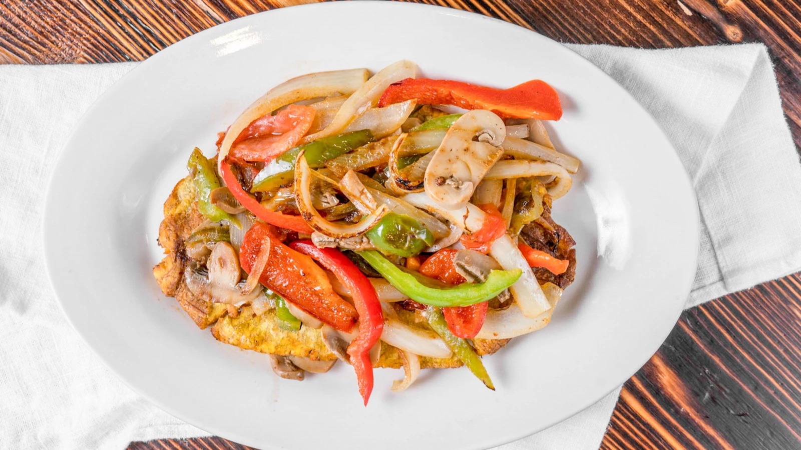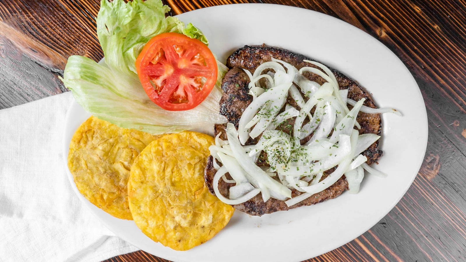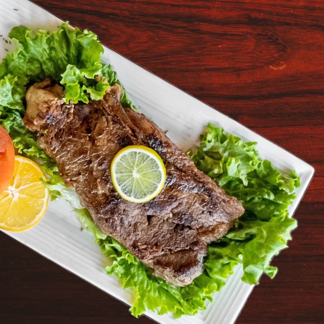 Juicy grilled steak sautéed with onions, served with three classic sides flavorful and filling.