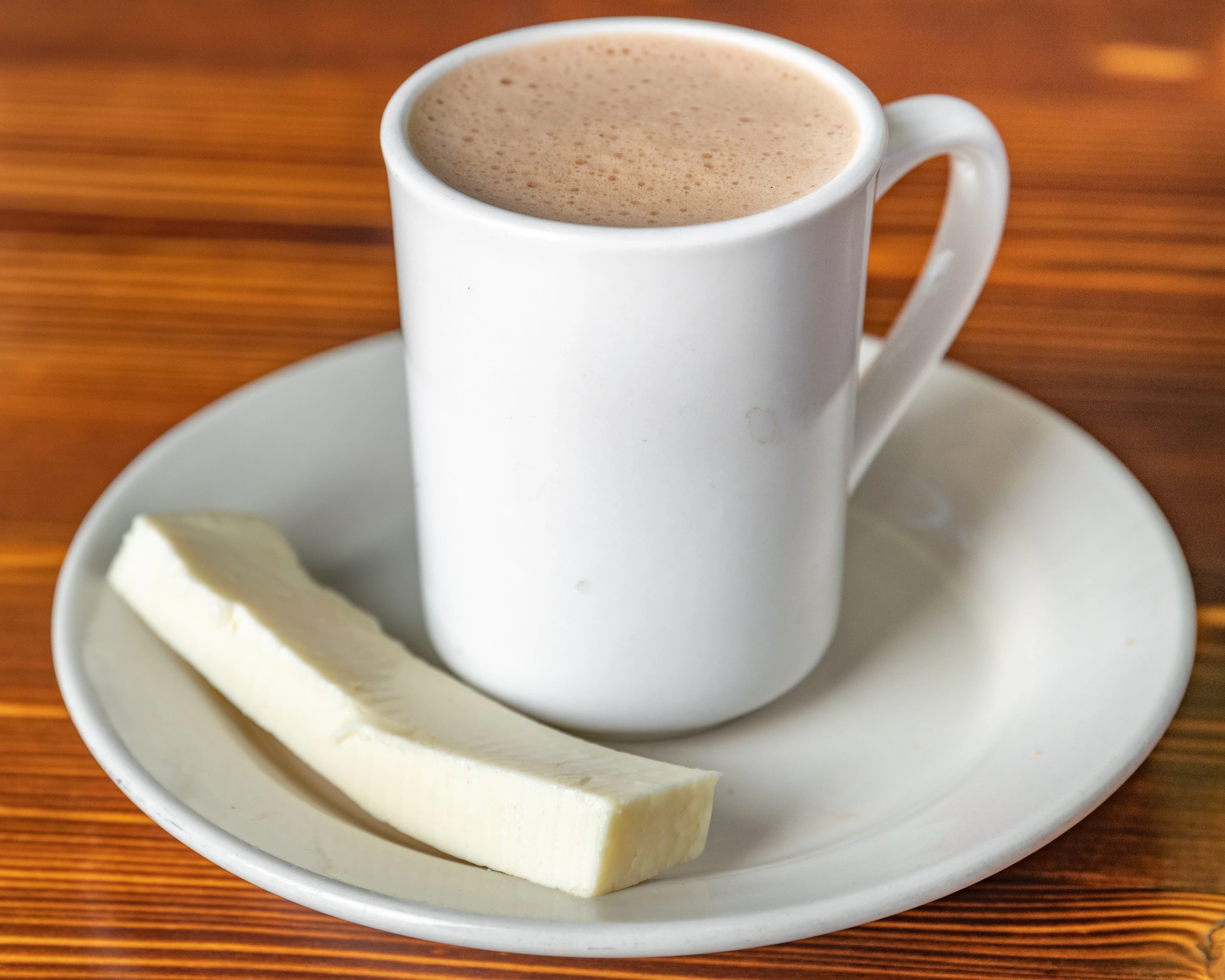 A warm, sweet drink meade from sugarcane, served with soft cheese comforting and unique