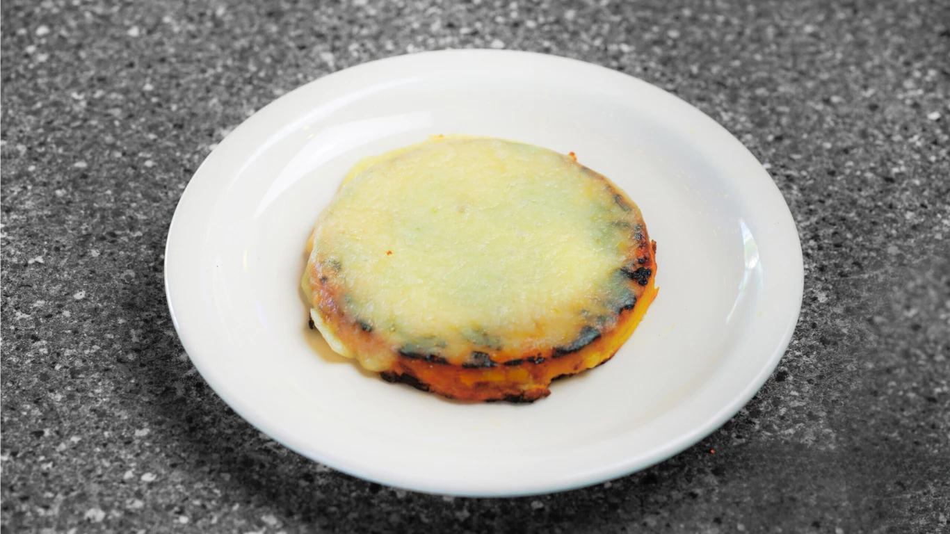 Soft and warm corn cake topped with melted cheese — a simple and comforting classic.